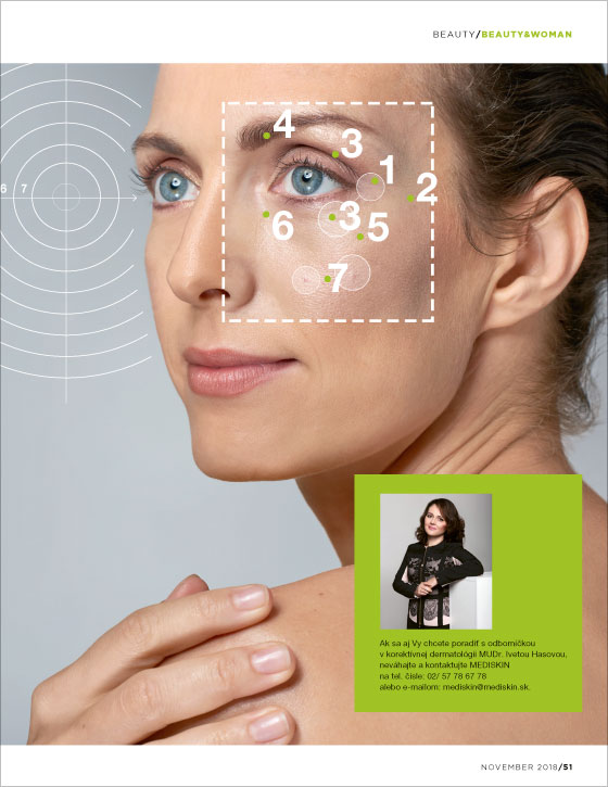 Prelistovali ste sa do sveta krásy. Len na týchto stránkach sa dozviete odpovede na sedem problémov, ktoré nás ženy (ale tiež mužov), trápia najčastejšie. O svoje odborné skúsenosti sa s nami podelila odborníčka na estetickú medicínu MUDr. Iveta Hasová, z laserového centra MEDISKIN, ktoré prináša to najlepšie z najnovšieho zo sveta krásy.