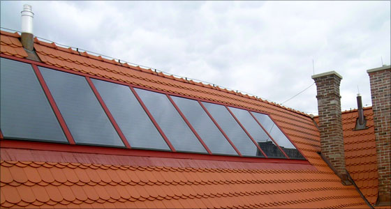 ,,Slnečné kolektory sa inštalujú najlepšie na šikmú strechu, pokiaľ spĺňa kritériá na sklon a nosnosť. Alebo sa integrujú do strešnej krytiny. Vtedy je výhodou ušetrenie časti strešnej krytiny a lepšia tepelná izolácia vane slnečného kolektora. Pri inštalácii na podpornú konštrukciu nad krytinu je možnosť ovplyvniť sklon kolektorov. Existujú aj celé solárne strechy, kde sa sústavou slnečných kolektorov pokryje celá plocha strechy. Pri plochých strechách sa inštalujú na osobitnú konštrukciu. Môžu byť umiestnené aj na iné vhodné miesto, úplne mimo objektu pre ktorý sú určené a to na osobitnú konštrukciu, alebo na iné objekty (garáže, dielne,...),“ vymenúva O.Dobrocký.