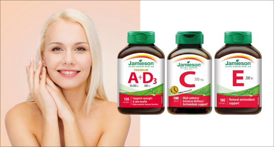 Vitamín C, známy bojovník za imunitu, urýchľuje látkovú výmenu v bunkách pokožky a pomáha tak pri hojení rán a eliminuje výskyt pigmentových škvŕn na koži. Ide o najdôležitejší vitamín pri regenerácii kože a ochrane pred škodlivými účinkami slnečného žiarenia či nikotínu. Klasickým zdrojom tohto vitamínu je kyslá kapusta, brokolica, paprika, citrusy, takže ak ich skonzumujete dostatok, ochráni „céčko“ vašu pleť pred voľnými radikálmi či akné. Keďže vitamín C viaže kolagén, spevňuje nielen svaly, šľachy a kĺby, ale pôsobí aj na pokožku a už na prvý pohľad ju ozdravuje.