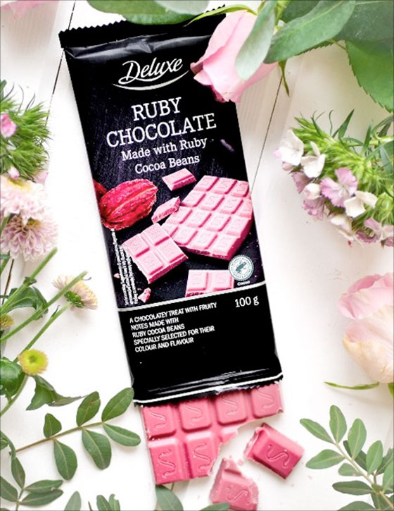 Počuli ste už o ružových kakaových bôboch? Po horkej, mliečnej a bielej čokoláde je ruby podľa odborníkov ten najpozoruhodnejší objav. Ružová čokoláda je vyrobená zo spomínaného kakaového bôbu bez akýchkoľvek pridaných farbív a ovocných príchutí. Pýši sa svojou sviežou ovocnou chuťou a nájdete ju aj v limitovanej edícií Deluxe v regáloch Lidl.