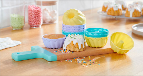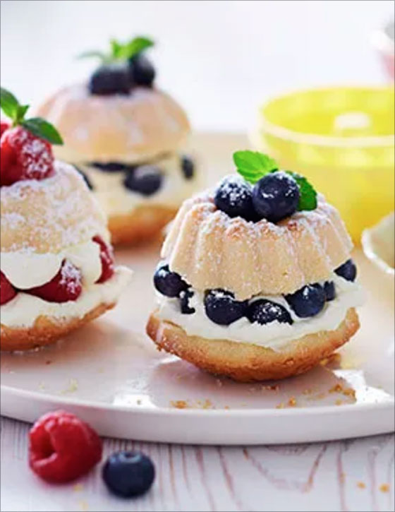 Na tieto rozkošné minibábovky vám bude stačiť klasické trené cesto, z akého robíte trebárs bábovku a formičky na minibábovky z Tchibo. Upečené bábovečky rozrežte na polovicu a naplňte podľa chute – krémom, pudingom, šľahačkou. Dozdobte ovocím a dezert je hotový! Ak nemáte poruke plnku, môžete bábovky poliať polevou a posypať sekanými orechami, alebo ozdobiť podľa fantázie.