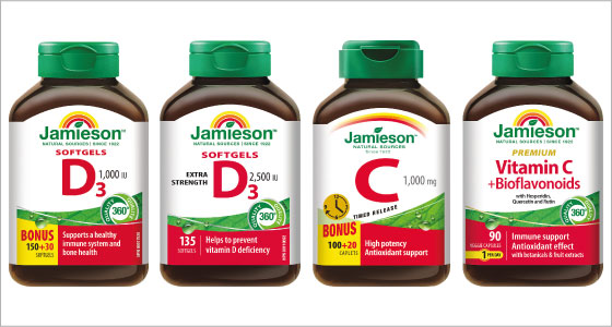 Deficit týchto živín  v našom organizme dokážu dokonale doplniť prírodné vitamíny Jamieson, ktoré už viac ako storočie (spoločnosť Jamieson Laboratories bola založená v roku 1922) pomáhajú ľuďom na celom svete k zlepšovaniu zdravia. Majú výbornú reputáciu, pretože dodržiavajú štandardné postupy FARMACEUTICKEJ KVALITY VÝROBY, ČISTOTY A BEZPEČNOSTI.