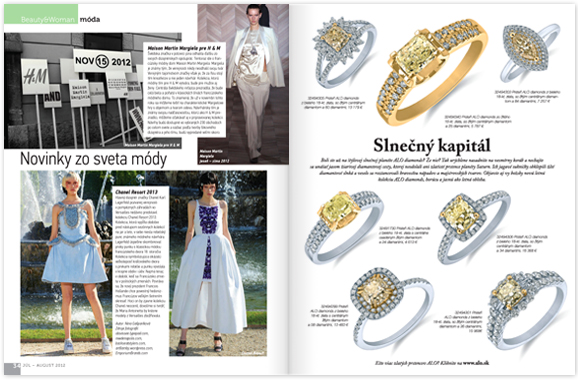 Boli ste už na štýlovej slnečnej planéte ALO diamons? Že nie? Tak urýchlene nasadnite na vesmírny koráb a nechajte sa unášať jasom žiarivej diamantovej cesty, ktorej neodolali ani zlatisté prstence planéty Saturn. Ich jagavé sukničky obklopili žlté diamantové slnká a veselo sa roztancovali hravosťou nápadov a majstrovských tvarov. Objavte aj vy božsky novú letnú kolekciu ALO diamons, horúcu a jasnú ako letná obloha.