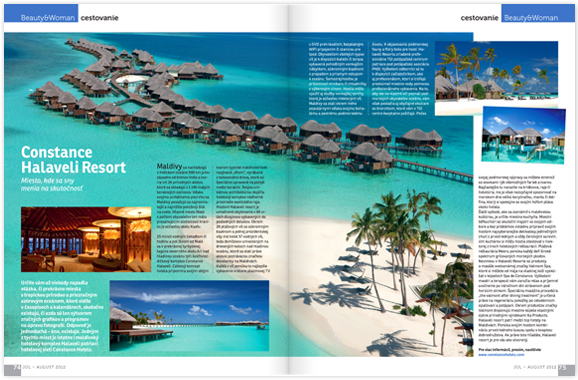 Určite vám už niekedy napadla otázka, či prekrásne miesta s tropickou prírodou a priezračným azúrovým oceánom, ktoré vidíte v časopisoch a kalendároch, skutočne existujú, či azda sú len výtvorom zručných grafikov a programov na úpravu fotografií. Odpoveď je jednoduchá – áno, existujú. Jedným z týchto miest je istotne i maldivský hotelový komplex Halaveli patriaci hotelovej sieti Constance Hotels.