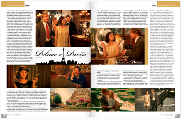 Je priam obdivuhodné s akou ľahkosťou, šarmom, vtipom a eleganciou dokáže sedemdesiatšesťročný Woody Allen (nar. 1. 12. 1935) ešte tvoriť, príjemne zaujať a prostredníctvom filmu naplniť diváka čarom nostalgie, nevtieravej múdrosti a ľudskosti. Už prvé zábery podfarbené úžasnou hudbou (pri klarinete si človek chtiac nechtiac musí spomenúť na Allenovu lásku k tomuto nástroju) naladia diváka na tú pravú atmosféru, na tú pravú tóninu, ktorú mesto Paríž má a na základe ktorej si bezpochyby zaslúži pozornosť každého kultúrneho a kultivovaného človeka.