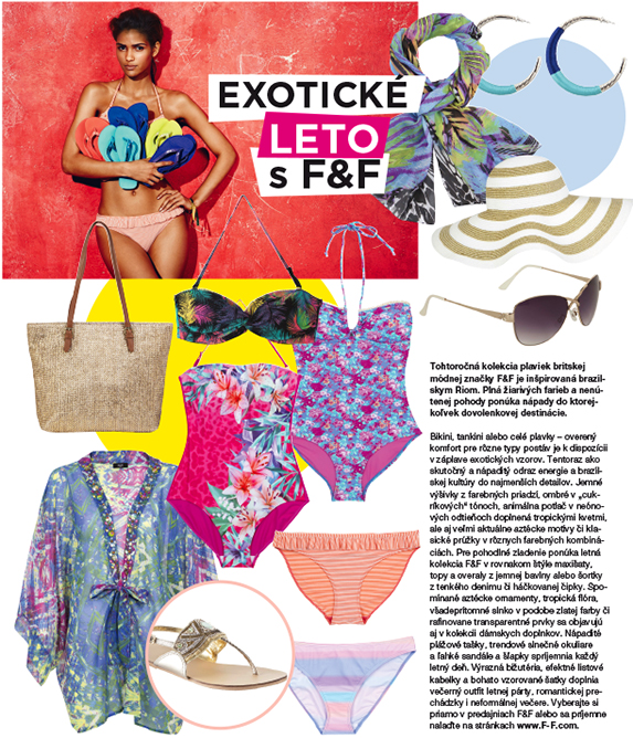 Tohtoročná kolekcia plaviek britskej módnej značky F&F je inšpirovaná brazílskym Riom. Plná žiarivých farieb a nenútenej pohody ponúka nápady do ktorejkoľvek dovolenkovej destinácie.